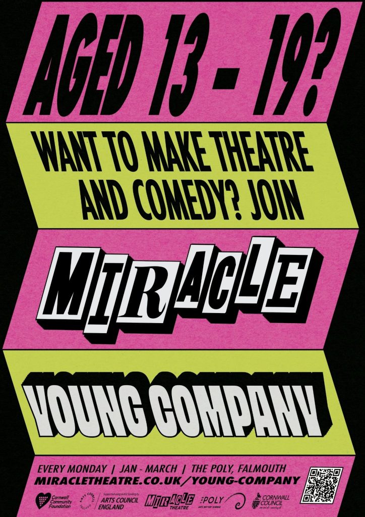 Launching in 2026 and supported by the Cornwall Community Foundation’s Young Minds First fund, Miracle Young Company will be a cornerstone of Small Miracles, giving young participants the chance to create and perform alongside professional artists. For Hannah, it is about opening doors that once opened for her and ensuring that every young person who wants to explore theatre has the encouragement to do so.
