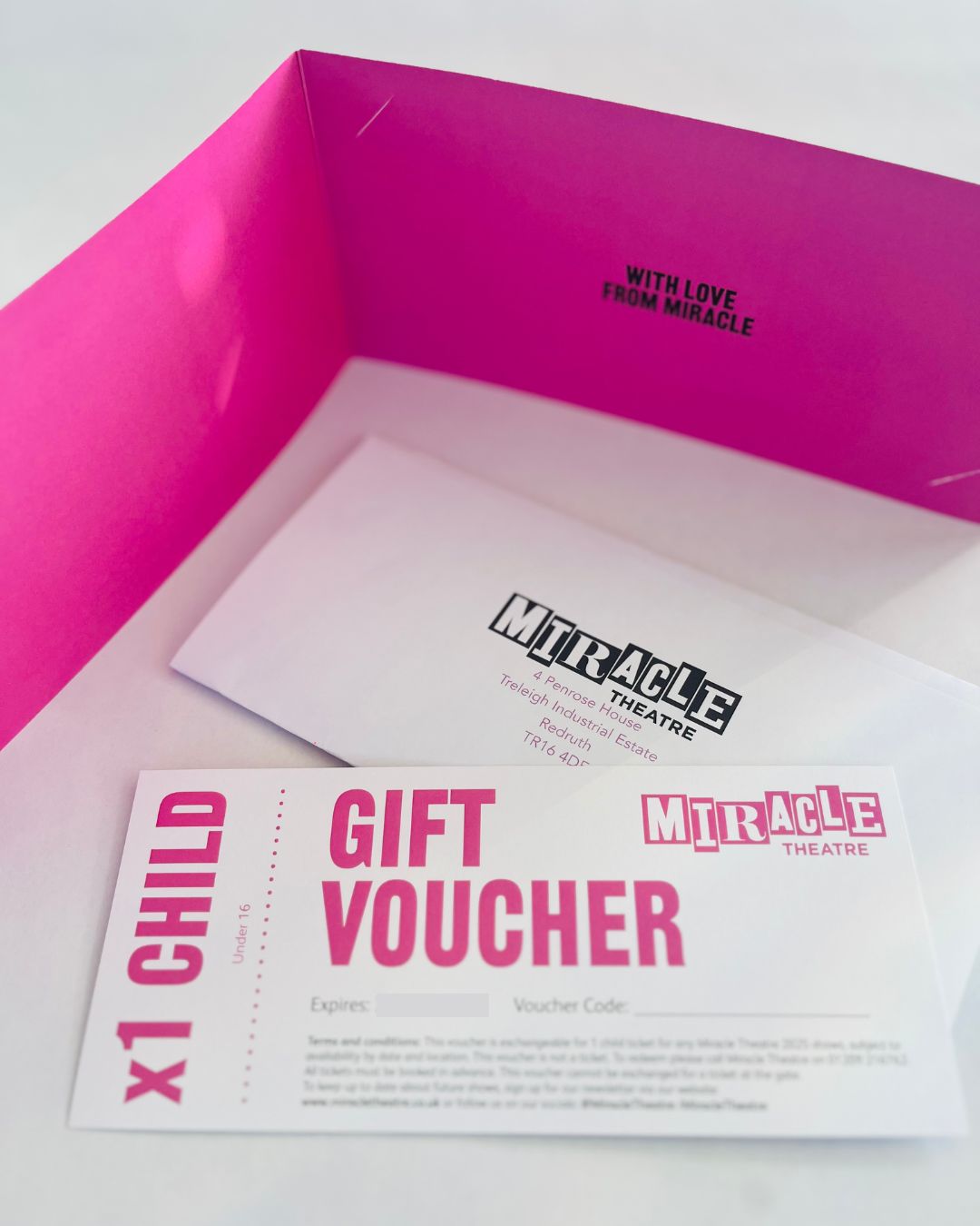 ✔ 1 x Child Voucher (Under 16) in a presentation folder